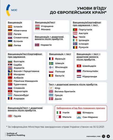 Отметим, что на момент выхода новости с туристической целью из Украины уже не попасть в Италию, Мальту и Сан-Марино. А вакцинацию, тест и дополнительные требования ввели Швейцария, Лихтенштейн и Нидерланды.
