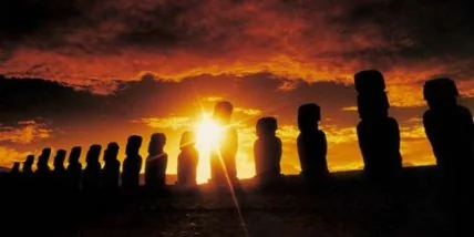 Глаза статуй смотрят в небо. В небо - такое же, как и тогда, когда столетия назад, для приплывших из-за горизонта открылась новая родина? В прежние времена островитяне были убеждены, что моаи охраняют их землю и их самих от злых духов. Все стоящие моаи повернуты лицом к острову. Непостижимые, как время, они погружены в молчание. Это таинственные символы ушедшей цивилизации.