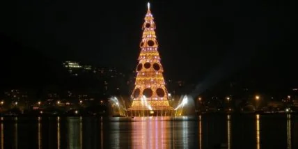 Эта бразильская новогодняя елка, установленная в Рио-де-Жанейро, безусловно, является 1-й из самых красивых в мире. Начиная с 1 декабря, она ярко сияет в море посреди лагуны Родриго де Фрейтас. Торжественное "открытие" крупнейшей в мире елки на воде и начало Рождественского периода в городе отмечали грандиозными фейерверками и лазерным шоу в сопровождении зажигательной музыки.