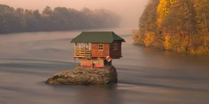 Этот необычный домик посреди сербской реки Дрина был построен местными ребятами порядка сорока пяти лет тому назад. Главной целью строительства стало создание уединенного места отдыха. И им это удалось. Ребята, изначально, просто притянули несколько досок, чтобы было удобнее загорать, а затем, решили соорудить домик. Регулярные перепады уровня воды несколько раз разрушали дом. Однако, его каждый раз возводили заново. Еще несколько месяцев тому назад о домике знали лишь местные и небольшая горстка туристов. Все кардинально изменилось, когда в журнале "National Geographic" появилась фотография, сделанная Ирен Беккер. Сотни туристов сразу же захотели побывать в этом необычном месте.