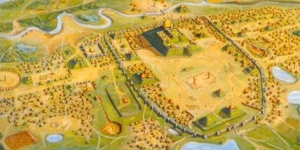 Кахокия – название, данное индейскому поселению близ Иллинойса, США. Археологи считают, что город был основан в 650 году нашей эры и сложная структура его строений доказывает, что когда-то это было высокоразвитое процветающее общество. На пике процветания Кахокию населяло 40 000 индейцев – это было самое густонаселенное поселение Америки до прибытия европейцев. Самая главная достопримечательность Кахокии – земляные курганы высотой до 100 футов на участке в 2200 акров. По всему городу также расположена сеть террас и считается, что особо важные здания, такие как дом правителя, были построены на самых верхних террасах. Во время раскопок был найден деревянный солнечный календарь под названием Woodhenge. Календарь играл важнейшую роль в жизни сообщества, как религиозную, так и астрологическую, отмечая дни солнцестояния и равноденствия.