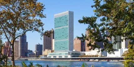 Главный офис Организации Объединенных Наций в Нью-Йорке был разработан международной командой архитекторов. Главное здание Секретариата стало одним из первых небоскребов города в Международном Стиле. В 1946 Организация Объединенных Наций (ООН) искала местоположение для нового главного офиса в Нью-Йорке.