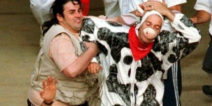 Каждый раз, когда мимо проносят образ святого, участники процессии кричат: "Вот идет корова!" "Корова" при этом бегает среди толпы, распугивая всех рогами. Шествие заканчивается, когда процессия достигает мэрии, где ее встречает глава города. "Корове" здесь предлагают поджаренный хлеб и лимонад или вино. Далее стартуют массовые гуляния. После полудня все расходятся по домам.