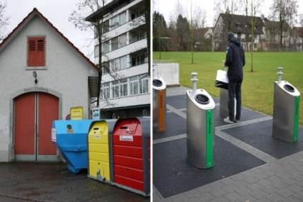 В Цюрихе 43 % мусора перерабатывают. Для сбора картона, металла, стекла повсюду стоят контейнеры, есть даже надземные урны-бункеры. Остальной мусор выбрасывают в белых пакетах по € 1,5. Все заинтересованы, чтобы этих пакетов было меньше, и тщательнее сортируют. Мусор сжигают, а получаемая энергия идет на отопление 170 тыс. домов. При этом дым проходит очистку и выходит из труб безвредным.