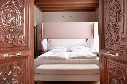 Здесь почти 200 комнат, и все они очень просторны, что, к слову, для исторических зданий совсем нехарактерно. Роскошная обстановка хранит налет старины: мебель выдержана в классическом стиле, потолки и полы отделаны черным деревом, на окнах сохранились свинцовые переплеты, ванные комнаты сияют белизной, интерьеры украшены картинами и фресками.