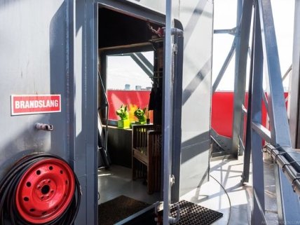 Стоит добавить, что кран слегка поворачивается под воздействием силы ветра, поэтому вид из окна все время меняется. В спектр услуг отеля входит трансфер до Амстердама на частном самолете, с последующей доставкой до отеля на лимузине. При желании, можно заказать персонального телохранителя.