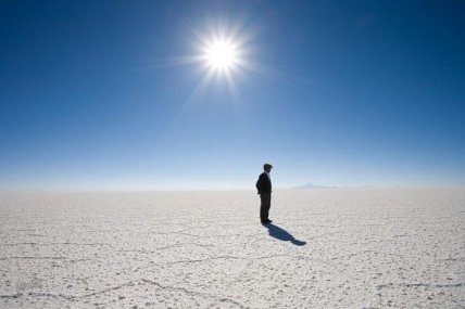 В Андах, на высоте 3653 метров над уровнем моря, можно увидеть необычный белоснежный пейзаж — это солончак Уюни. Когда-то здесь было соленое озеро, теперь это просто соляная пустыня. Это место в Боливии площадью в 10 582 квадратных километра является одним из самых плоских мест на Земле.