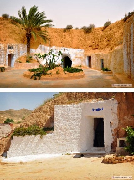 Большинство поклонников "Звездных войн" знают Матмату как вымышленный пейзаж и дом Люка Скайуокера. Многие из сцен первого фильма были сняты прямо здесь, в африканской стране Тунис, в отеле Sidi Driss. Традиционный берберский дом был построен столетия назад, и сегодня предлагает посетить традиционные номера троглодитов.