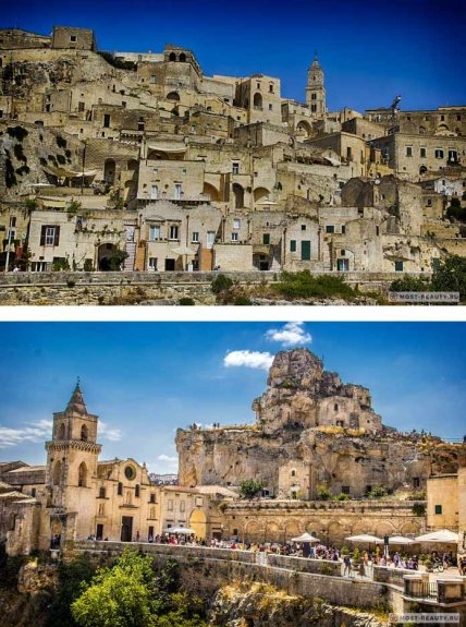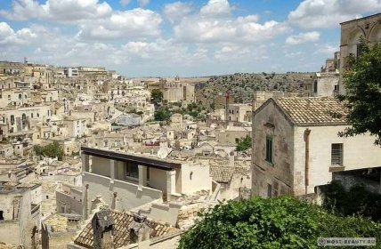 Матера - одна из самых впечатляющих пещерных деревень. Она находится на вершине хребта с глубокими каньонами по обе стороны, где люди живут и работают в пещерах. Люди начали селиться здесь, по крайней мере, 9 тыс. лет назад. Построили они свои дома в естественных пещерах стен каньона и продолжали расширять их, пока, не появились тысячи жилищ по всему городу.