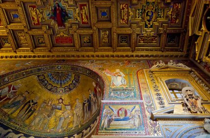 Санта-Мария-ин-Трастевере – титулярная базилика в районе Трастевере, возможно, одна из самых старых церквей Рима, посвященных Богородице. Фасад церкви также украшен мозаикой Каваллини, изображающей Богородицу среди 10 святых (XII-XIII вв.).