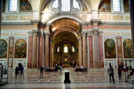 В барочном центральном нефе находится колоннада из 22 колонн ионического ордера, взятых из терм Каракаллы.