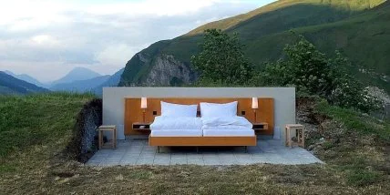 В этом отеле всего одна комната. В комнате, если можно ее так назвать, помимо кровати и пары тумбочек больше ничего нет — ни стен, ни потолка. В распоряжении гостей потрясающий вид на горный пейзаж, а по ночам — на звездное небо. Если, конечно, не будет дождя.