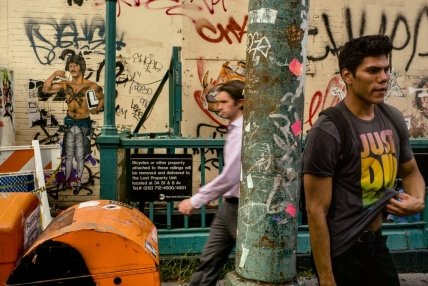 "Работа Левитт побудила меня попробовать свои силы в спонтанной уличной фотографии, сфокусировав мою камеру на тех, кто населяет это какофоническое, часто подавляющее место"- Ребекка Норрис Уэбб.