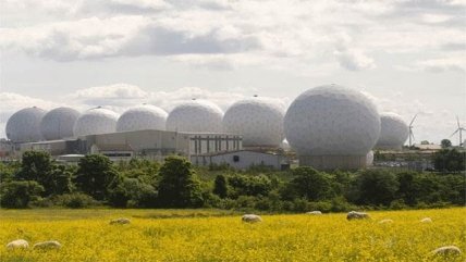 Этот необычного вида комплекс зданий и шарообразных сооружений обеспечивает связь и разведывательную поддержку Великобритании и США. База такая огромная, что ее называют крупнейшей станцией электронного мониторинга в мире. Предполагается, что каждый спутник (большие круглые шаровидные объекты) — часть системы «Эшелон», засекреченной сети, которая используется для слежки за частными и коммерческими коммуникациями.