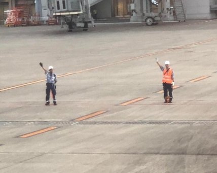 Дружелюбные рабочие аэропорта провожают самолет – тут так принято.