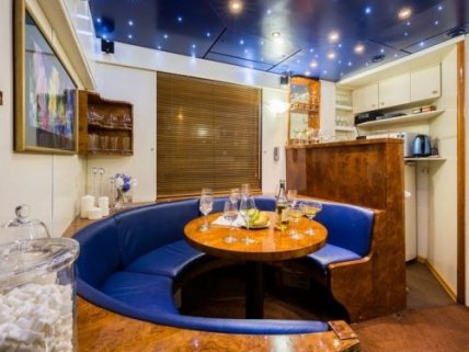 Ночью президентский люкс выглядит еще более элегантно. Диваны раскладываются, превращаясь в кровати, здесь также есть халаты и тапочки для максимального комфорта. После хорошего ночного отдыха в просторном купе пассажиры могут насладиться бесплатным завтраком, который приносят прямо к их двери.