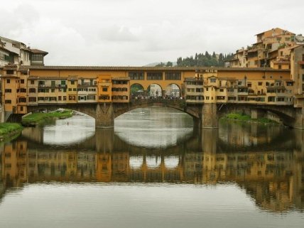 Поте Веккио — самый старый мост во Флоренции. Есть мнение, что мост существовал здесь еще во времена Древнего Рима. А свой нынешний облик приобрел в 1345 году, когда его построили на месте снесенного наводнением. На мосту построили и дома — в средневековой Европе это была обычная практика.