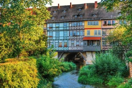 По обеим сторонам моста Кремербрюке в Эрфурте находятся жилые фахверковые дома. Мост переброшен через Брайтшром, один из рукавов реки Геры, и соединяет площадь Бенедикта с площадью Венигермаркт