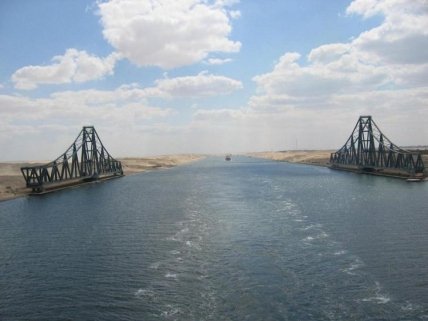 Коринфский Канал в Греции вгрызается в узкий Коринфский перешеек, разделяя пелопоннесский полуостров от греческого материка, соединяя Коринфский залив с Заливом Сароникос в Эгейском море. Построенный в период между 1881 и 1893 годами, Коринфский канал считают большим техническим успехом того времени. Хотя канал позволяет избежать 700-километровой поездки вокруг Пелопоннеса, он слишком узкий для большинства современных океанских грузовых судов, поскольку может пропустить только суда шириной до 16.5 метров и осадкой до 7.3 метров. По вышеупомянутым причинам, Канал в наше время главным образом используется туристическими судами, с потоком в 11,000 кораблей каждый год. В 1988 два способных погружаться в воду моста были построены через Коринфский Канал, по одному в каждом конце, в Истмии и Коринфе. Настил моста способен понижаться на 8 метров ниже уровня воды, чтобы корабли могли использовать водный путь. Основное преимущество понижения моста вместо того, чтобы сделать его раздвижным, состоит в том, что нет никакой структуры выше судоходного канала и таким образом, никакого ограничения высоты судна. Это особенно важно для парусных судов. Дополнительно, отсутствие структуры выше палубы считают эстетически более приятной.