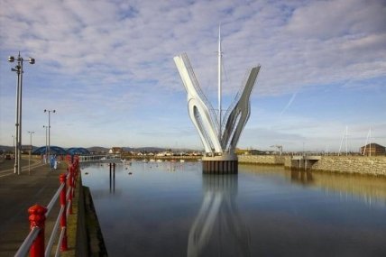 Пешеходный мост гавани Форид расположен в Риле, небольшом приморском курорте в Денбишире, на северо-восточном побережье Уэльса. Уникальная структура обеспечивает проход судов по судоходному каналу. При этом, одна сторона моста уравновешивает другую. Они поднимаются одновременно, словно в зеркальном отражении. Мачта из нержавеющей стали возвышается на 50 метров, с механизмом шкива и кабелями, поддерживающими пролеты моста. Это сооружение является одной из центральных достопримечательностей Риля. Центральная мачта гармонично вписывается в конструкцию, и оснащена по образу корабельных мачт всем необходимым снаряжением.