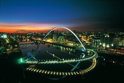 Гейтсхед Миллениум-Бридж — мост для пешеходов и велосипедистов, охватывающий Реку Тайн в Англии между площадью искусств Причалов Гейтсхеда на южном берегу и Пристанью Ньюкасла на северном берегу. Мост — по существу, две изящных кривых, одна из которых формирует палубу и другая поддерживает её. Чтобы позволить судам проходить внизу, обе дуги поворачиваются, как цельная структура. В движении Гейтсхед Миллениум похож на мигающий глаз, потому за ним и закрепилось подобное прозвище. Визуально изящный мост предлагает отличное зрелище, посмотреть на его поворот собираются сотни зрителей. Мостом управляют шесть 18-дюймовых Гидроцилиндров диаметром в 45 см, по три на каждой стороне. Каждый приведен в действие электродвигателем на 55 кВт. Маленькие суда и лодки до 25 метров высотой могут пройти внизу. Требуется всего 4.5 минуты, чтобы сделать полный оборот в 40 градусов. Это сооружение получило множество наград благодаря своей уникальности и легкости.
