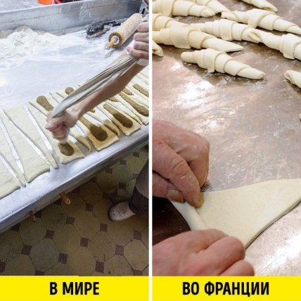 Круассан считается чуть не одним из символов Франции, хотя на самом деле эта выпечка родом из Вены. Правда, во Франции их стали делать исключительно из слоеного теста. При этом настоящие французские круассаны только те, что без начинки. То есть ни джема, ни крема, ни шоколада — ничего. Кстати, круассан с загнутыми концами сделан на основе маргарина, а классический прямой — чистого масла.