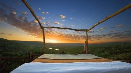 В кенийской пустыне раскинулось необычное, удивляющее своей самобытностью сафари-ранчо, где вместо привычных номеров туристам предлагают "спальни под открытым небом". Из номеров "Кикобо" открывается вид на живописную речную долину, а номера "Койя" стоят прямо на сваях вдоль реки Эвасо-Нгиро. В каждом номере есть так называемая кровать на колесах "Мукокотени", которую можно выкатывать, чтобы погрузиться в сон прямо под открытым небом. По территории ранчо бродят различные представители дикой природы: слоны, антилопы, львы, зебры, леопарды.