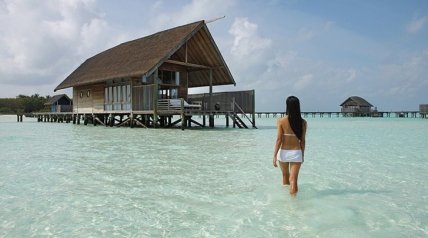 В 40 минутах езды на катере от главного аэропорта архипелага на частном острове Cocoa словно "вырос" из воды отель "Cocoa Island", состоящий из 33 наводных бунгало. Белоснежный песок и кристально чистая вода – что еще нужно для отдыха мечты? Гости могут заняться дайвингом, исследуя подводные рифы, или насладиться расслабляющими спа-процедурами.