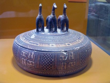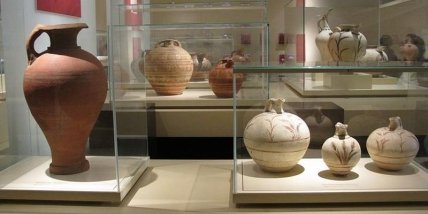 В экспозиции представлены изделия времен неолита, бронзового и железного веков, а также геометрические фигурки, оружие и вазы, извлеченные из гробниц и колодцев.