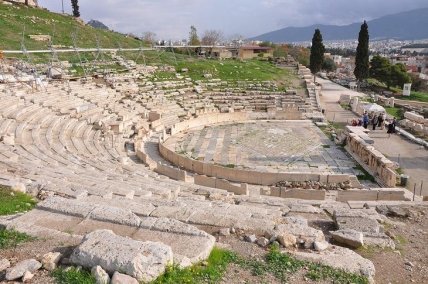 Европейская драма зародилась в театре Диониса, первые выступления в котором относятся к VI веку до нашей эры. Вырезанный в скалистом южном склоне Акрополя, это был первый когда-либо построенный театр.