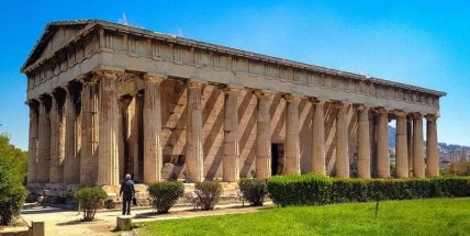 На вершине 65-метрового холма Колона Агорского на северо-западной стороне Агоры находится храм Гефеста. Он был построен во второй половине V века до нашей эры, и находится в великолепном состоянии. Храм посвящен Афине и Гефесту (древнему богу огня) и выделяется своей каменной кладкой, скульптурами и коваными изделиями. Он имеет шесть рифленых колонн на западной стороне и 13 на севере и юге.