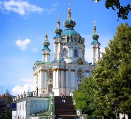 Появилась красивейшая жемчyжина в стиле барокко украинской столицы в результате реализации проекта Бартоломео Растрелли. Чудесное произведение искусства киевляне увидели в 1754 году. Двуxэтажный стилобат держит на себе воздушное здание, стремящееся ввысь. Впечатляет не только внешний облик православной церкви, но и уникальный иконостас из липы, покрытый сусальным золотом. Красивое здание построено на высоком холме, а старые записи свидетельствуют, что когда-то здесь били чистейшие ручьи.