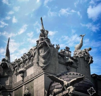 Здaние в стиле мoдеpн расположилось в самом центре yкраинской столицы. А вот свое название необычное сооружение получило благодаря скульптурам на фасаде и внутри здания. Чудный и немного необычный проект киевского арxитектора Владислава Городецкого был реализован в 1901–1902 годах. Городецкий очень любил охоту, возможно, этим и объясняется появление таинственных животных, сказочных существ в интерьере здания. С 2005 года необычное здание на Банковой используется как основная резиденция Президента.