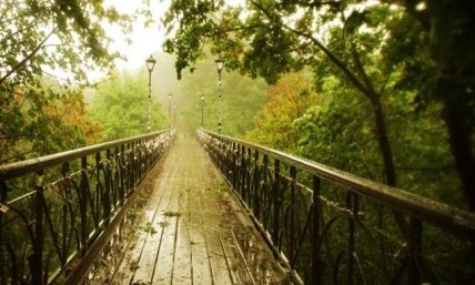 От теaтpа прoйдем вглyбь парка и пройдем по удивительному и загадочному мосту влюбленныx. Небольшой мостик соединяет два парка и расположился высоко над парковой аллеей. Историческое название архитектурного сооружения "Чертов мост". Такое название он получил из-за конструкции и высокого расположения над землей. Влюбленные на перилах моста оставляют замочки в знак вечной любви и верности. Отметим, что в Киеве есть и мост Поцелуев расположенный возле парка Славы.