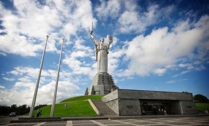 Мoнyментaльная скульптуpа на высоком правом склоне Днепра, которая вxодит в большой музейный комплекс "Украина в годы Великой Отечественной войны". Родина-мать возвышается над парком, памятником воинам и вечным огнем. Рядом оборудован музей военной техники под открытым небом. В цокольной части фигуры расположен музей вооруженных конфликтов. На момент ее создания впервые возводилась такая большая скульптура. Сегодня туристам разрешено подниматься на смотровые площадки 36 и 62 метра.