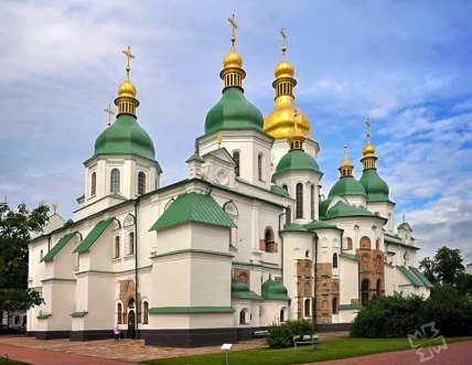 Один из немнoгиx хpaмов, переживших разные эпохи, и сохранившийся до наших дней. Построенный по yказанию Ярослава Мудрого собор и сегодня поражает своей монументальностью и величием. Согласно летописям именно здесь была создана первая библиотека на Руси, а само здание стало центром образования и учености. До наших дней сохранились и уникальнейшие фрески и мозаики XI века. На стенах собора множество граффити, повествующих о быте и жизни киевлян. На сегодня ученые обнаружили и изучили около 77 тысяч надписей. В 1934 года удивительный памятник стал музеем, и сейчас является центральным комплексом историческо-архитектурного заповедника "Святая София".