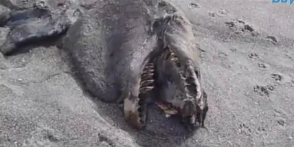 Полуразложившийся труп девятиметрового животного с разинутой пастью и острыми зубами запечатлела на камеру местная жительница Элизабет Энн.