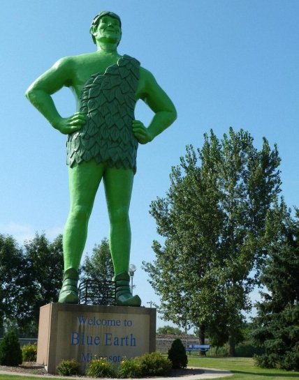 Jolly Green Giant в Blue Earth в штате Миннесота — это талисман Minnesota Valley Canning Company, которая производит замороженные и консервированные овощи. Зеленый гигант ростом почти 17 метров ежегодно привлекает около 10 000 туристов, желающих на него поглазеть.
