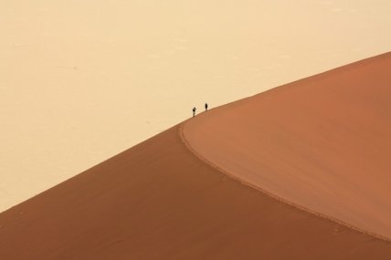 Нигде в мире вы не найдете таких высоких дюн - до 300 метров в высоту и такого цвета песков - от абрикосового до кроваво-красного. Пустыня выглядит сказочно, и кажется, что она простирается до бесконечности (более чем на 30 километров). Площадь пустыни Намиб сопоставима с площадью Чехии - 81 000 квадратных километров.