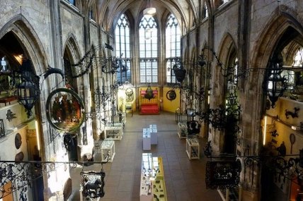 Храм выстроен в живописном стиле пламенеющей готики. Его шпили действительно напоминают языки каменного пламени, тянущиеся к небесам. Церковь возводилась в период 1437-1521 гг. на добровольные пожертвования меценатов. Храм украшен яркими искусными витражами XV века и изящными декоративными элементами. Во время Второй мировой войны храм был частично разрушен, восстановление завершилось в 2010 году.