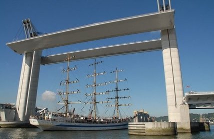 Мост 2008 года, оснащенный подъемными конструкциями и обладающий большой пропускной способностью. Пролеты специально размещены высоко над водой, чтобы под ними могли спокойно проходить большие суда. Опорные колонны моста возвышаются над Сеной на 91 метр, длина пролетов – более 1 км. Сооружение было спроектировано инженерами Э. Зубленом и М. Вирложо. Стоимость строительных работ составила 155 млн. евро.