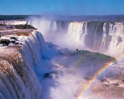 Это одно из самых ценных природных чудес Латинской Америки. Окруженный тропическими джунглями великолепный водопад реки Игуасу — граница между Аргентиной и Бразилией. Общая ширина составляет 2,5 км. Во общей сложности в Игуасу входит примерно 275 мелких водопадов, а высота самого высокого достигает 64 м. Другие факты: