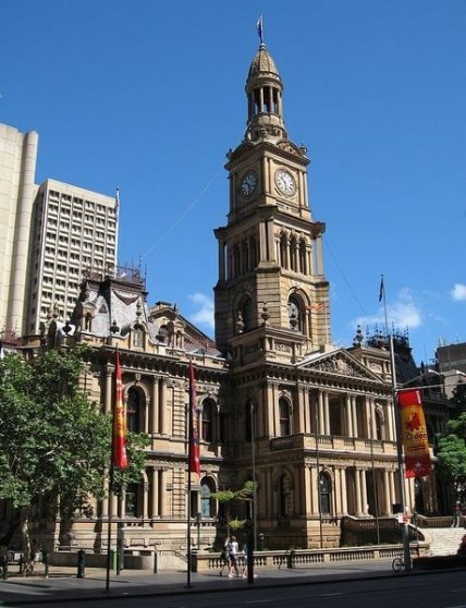 Здание Сиднейской ратуши в «викторианском» стиле, построенное из песчаника. Здесь располагается городская администрация. Это единственное историческое гражданское сооружение, полностью сохранившее свой облик с XIX столетия. До появления Сиднейского оперного театра в ратуше располагался городской концертный зал. Здание внесено в список национальных памятников Австралии.