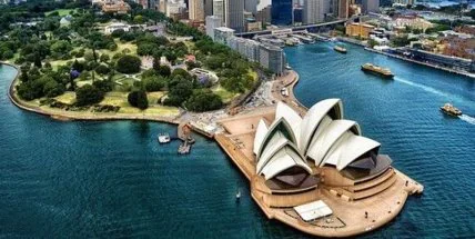 Выдающийся образец современной архитектуры и один из символов Австралии. Крыша здания напоминает летящие паруса или гигантские морские раковины. Архитекторы хотели передать образ застывшей мелодии через эти необычные формы. Оперный театр построен посреди воды на сваях, крышу поддерживают мощные металлические тросы. Здание занесено в список наследия ЮНЕСКО еще при жизни его создателя Й. Уотсона.