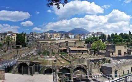 Еще один античный город, пострадавший в 79 году из-за вулканической активности Везувия. Его не только засыпало пеплом, но также залило потоками лавы и жидкой грязи, хлынувшей с неба вместе с дождем. Большей части населения удалось спастись. Организованные раскопки начались в 1738 году по инициативе короля Карла III. В ближайшем городе был открыт музей, куда доставлялись найденные экспонаты. Постройки и интерьер домов Геркуланума хорошо сохранились благодаря затвердевшей лаве.