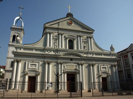 Снаружи костёл украшен множеством изумительных колонн и статуй, характерных для стиля барокко с элементами классики.