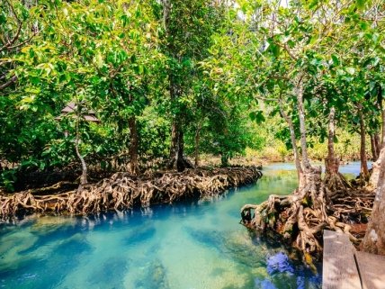 Название Tha Pom Khlong Song Nam означает "двухводный канал". Этот экологический центр известен своими великолепными мангровыми деревьями, а также потрясающе голубой водой - цвет, который возникает, когда морская вода смешивается с пресной водой в определенные моменты цикла прилива.