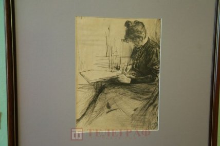 Широко представлены отечественные художники. Одна из заметных картин в коллекции музея - "Пишущая девушка" Ильи Репина. Рядом - натурные зарисовки Ивана Шишкина, гравюра "Хутор Киевский" Тараса Шевченко, работы Ивана Айвазовского, Валентина Серова, Исаака Левитана, Аполлинария Васнецова и других известных художников.