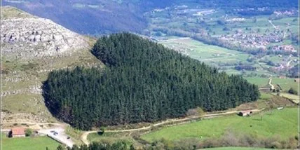 Прекрасный густой лес, выросший в форме сердца, находится в провинции Кантабрия, в северной части Испании. Но уникальную форму леса можно увидеть только с высоты птичьего полета, пролетая на самолете или вертолете над Кантабрией, и то, если взглянуть под правильным углом, иначе можно и не заметить необычные сердцевидные очертания.