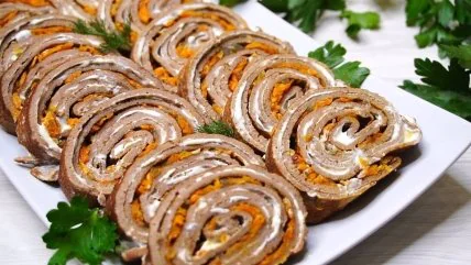 Вкусные печеночные рулетики по маминому рецепту: красивая бюджетная закуска